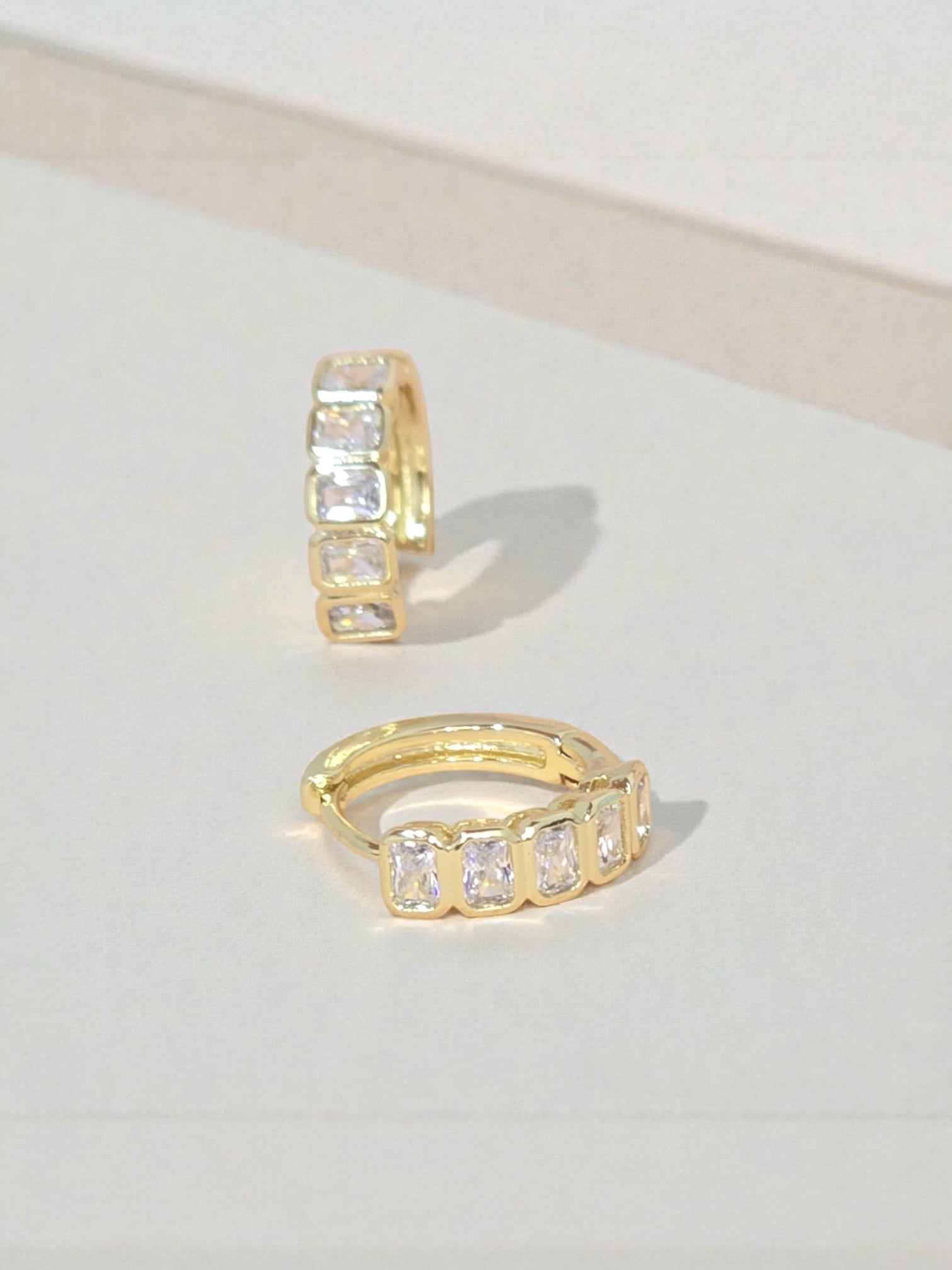 Candonga delicada adornada con circones brillantes, elaborada en covergold chapado en oro 18 k, hipoalergénico con capa protectora antihumedad. Su diseño elegante y moderno aporta un toque de brillo sutil, perfecto para complementar cualquier look diario o especial.