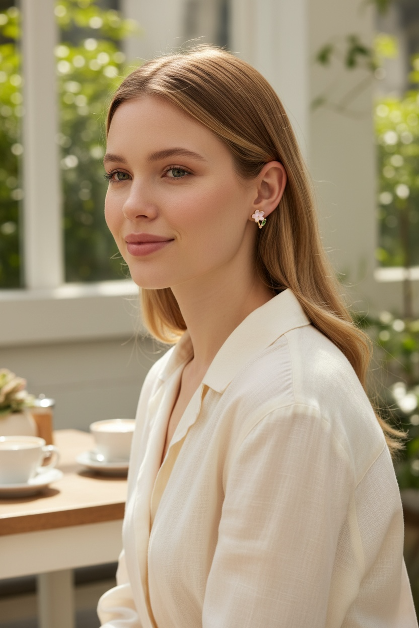 Topo pequeño en tono rosa rosado, elaborado en covergold chapado en oro 18k, hipoalergénico con capa y protección antihumedad. Un detalle suave y femenino que ilumina tu look con un toque delicado y moderno.