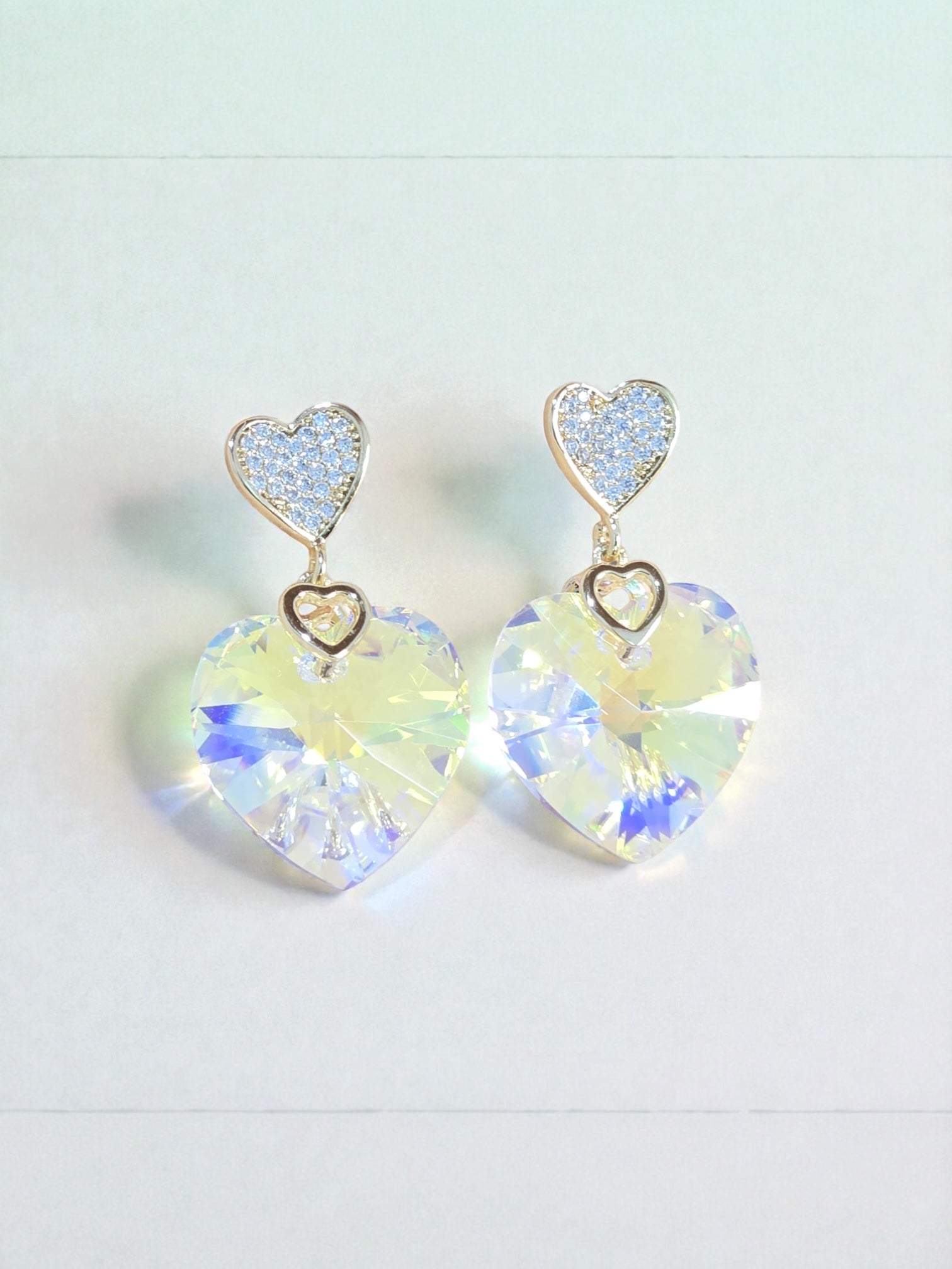Aretes con circon grande en forma de corazón, elaborados en covergold chapado en oro18k, hipoalergénico  y capa protectora antihumedad. Un diseño romántico y femenino que aporta un toque elegante y chic a cualquier look diario o especial.