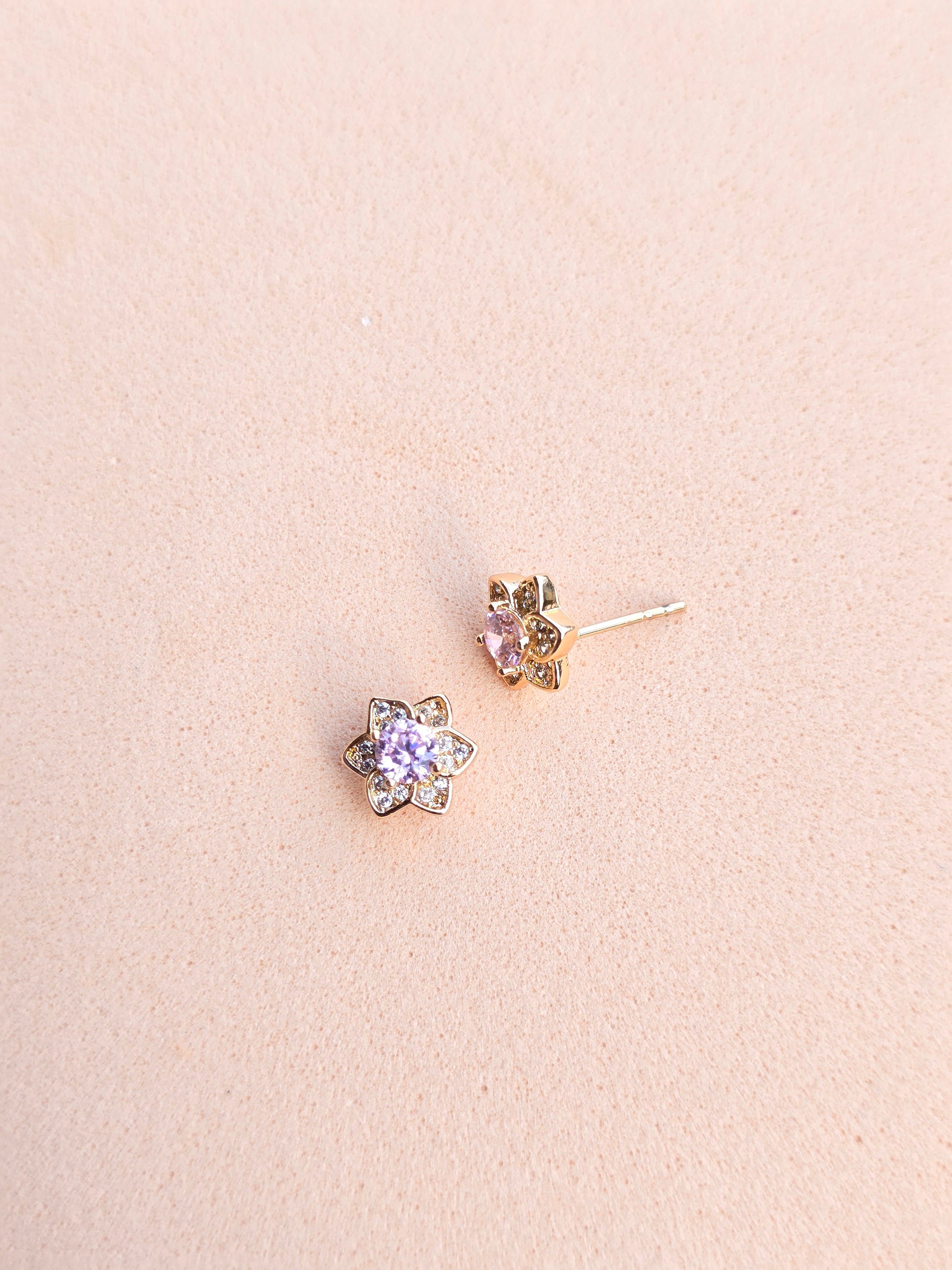 Los Aretes Roséa son una joya delicada que combina dulzura, brillo y elegancia. Elaborados en aleación de cobre de alta calidad con baño en oro rosa 18K, presentan un hermoso topo rosa decorado con un circón lila central que refleja la luz con un toque sutil y encantador.