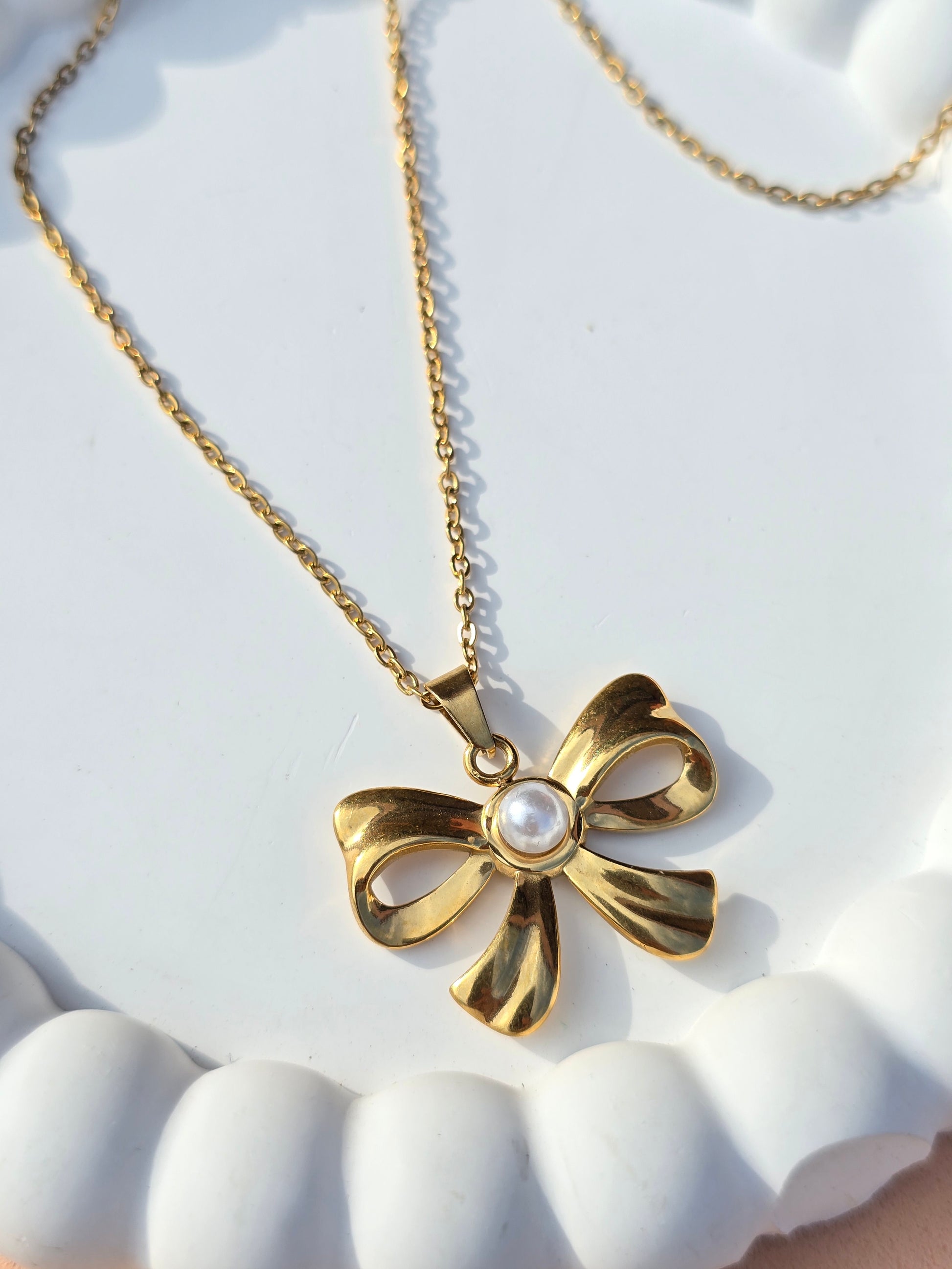Refleja tu estilo más tierno y elegante con este hermoso collar de perlas inspirado en la tendencia coquette. Su diseño delicado combina el encanto clásico de las perlas con un toque moderno y romántico, ideal para mujeres que aman los accesorios que resaltan su feminidad y dulzura, elaborado en acero inoxidable de alta calidad, es resistente al agua, no se oxida ni pierde su brillo. Perfecto para combinar con outfits románticos, looks diarios o detalles especiales.