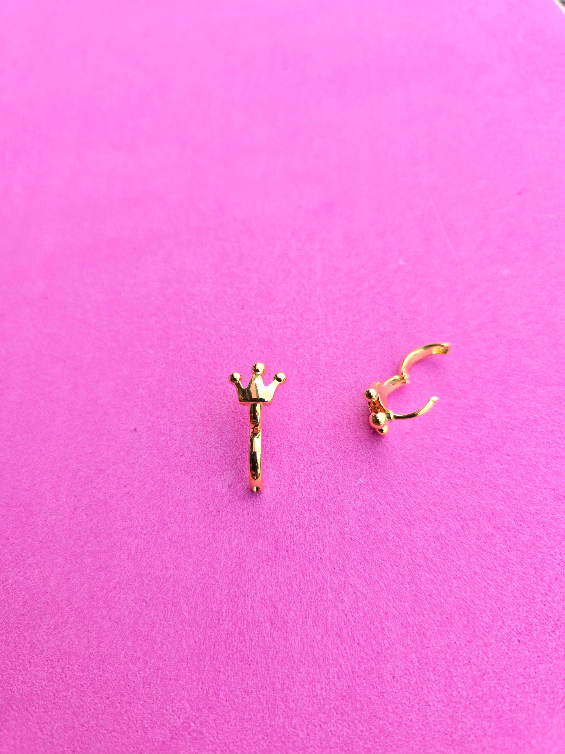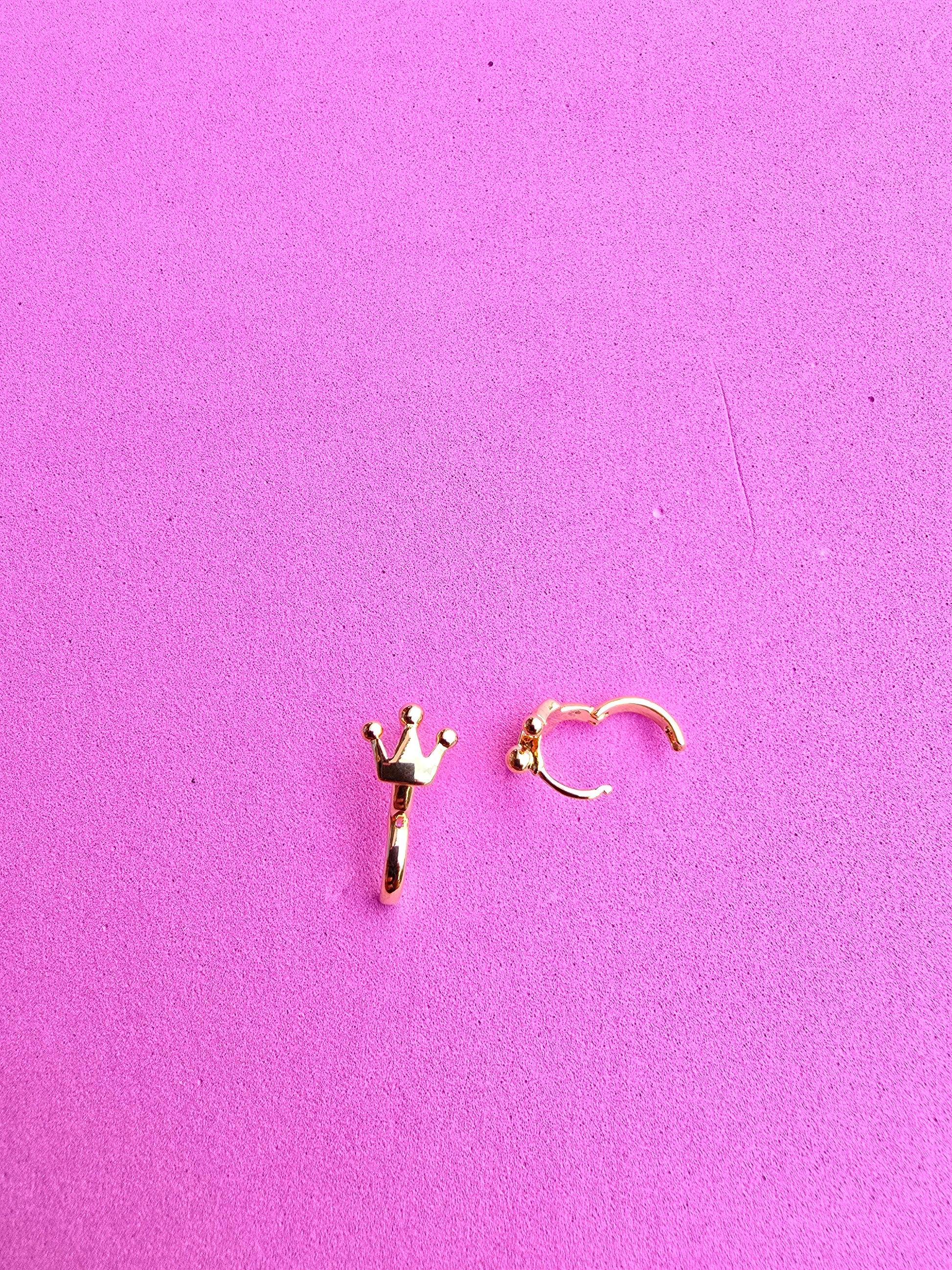 La Candonga Coronita destaca por su diseño majestuoso inspirado en una corona, símbolo de elegancia y poder femenino. Elaborada en aleación de cobre de alta calidad, recubierta con baño en oro 24k y una capa protectora que prolonga su brillo y evita el desgaste.