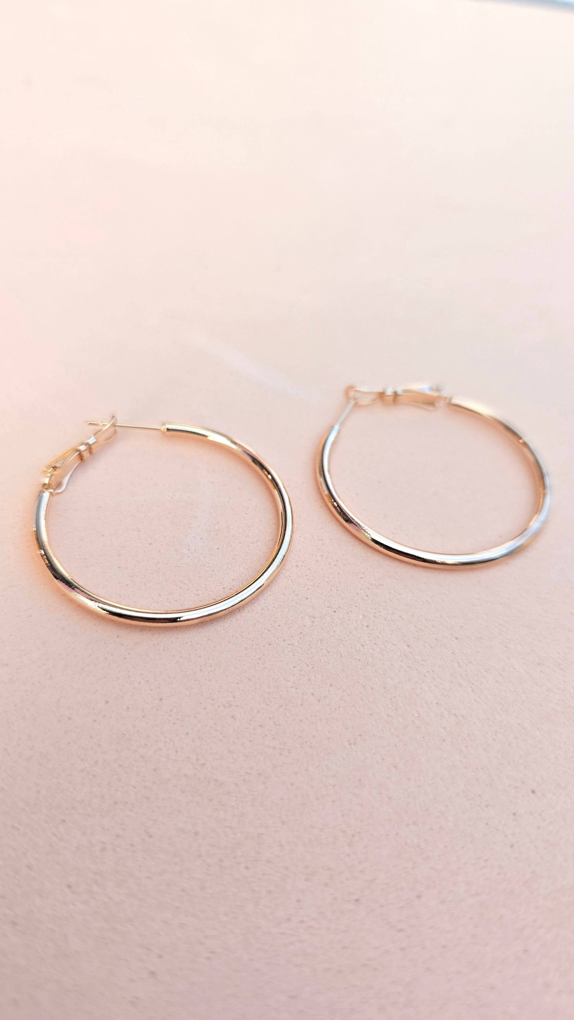 La Candonga Medium Gold combina elegancia y comodidad en un diseño clásico de tamaño mediano, ideal para todo tipo de ocasión. Fabricada en aleación de cobre con baño en oro rosa 18K y capa protectora antihumedad, ofrece un brillo duradero y una excelente resistencia al desgaste.