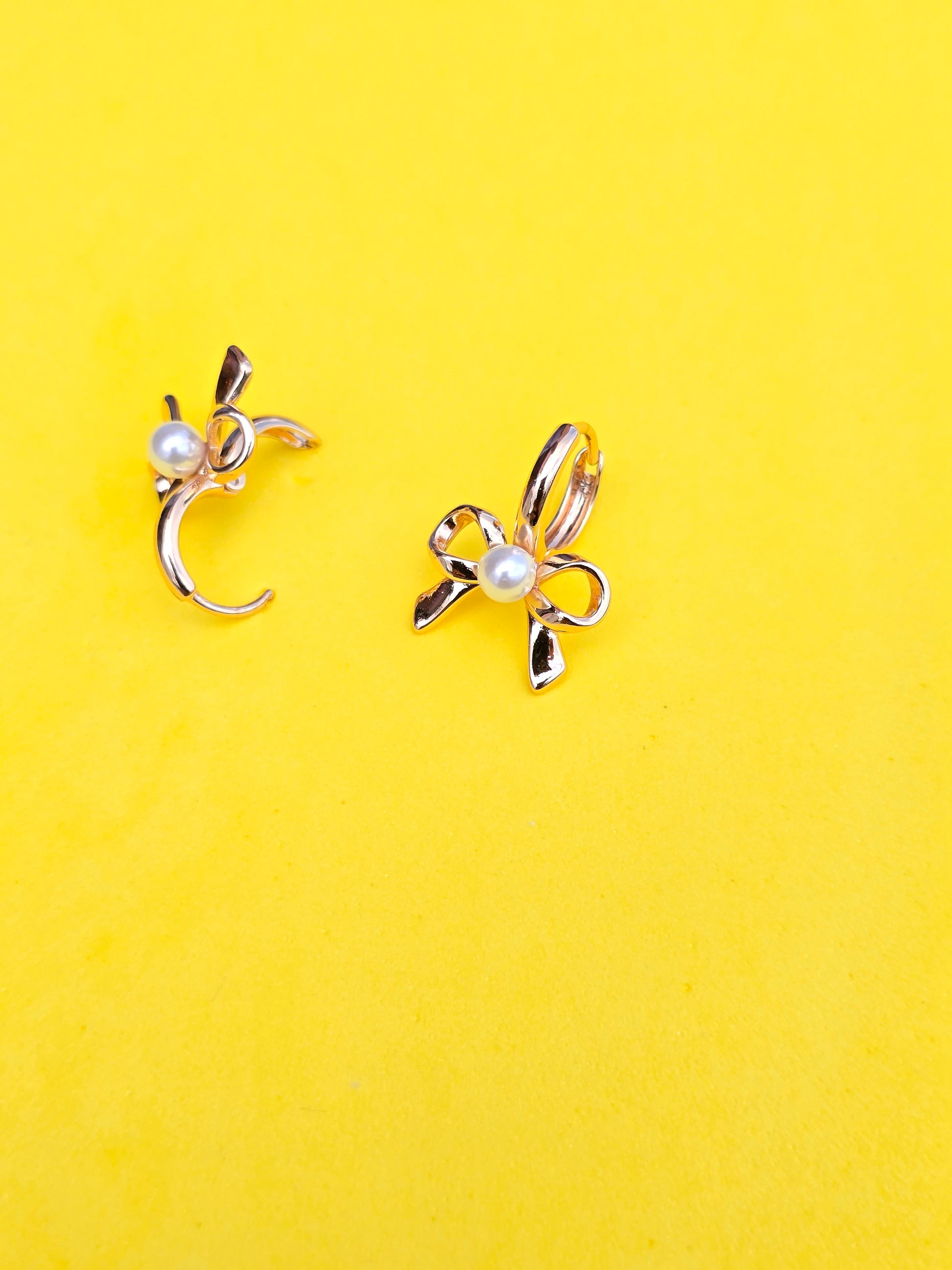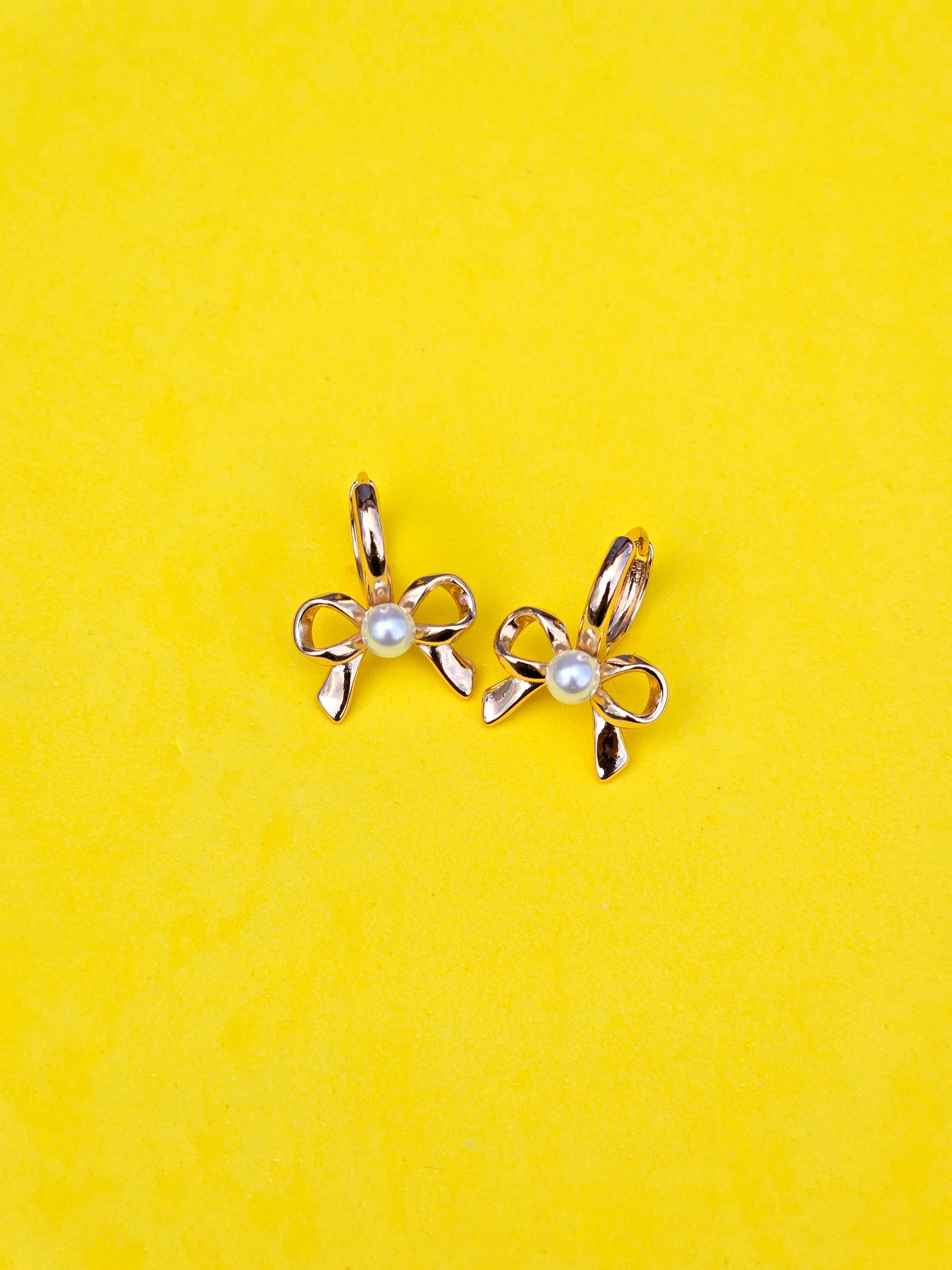 La Candonga Pearl Bow es la combinación perfecta entre dulzura y elegancia. Su diseño dorado tipo candonga presenta un detalle de moño decorativo en el extremo, realzado con una perla central que aporta un toque clásico y sofisticado.